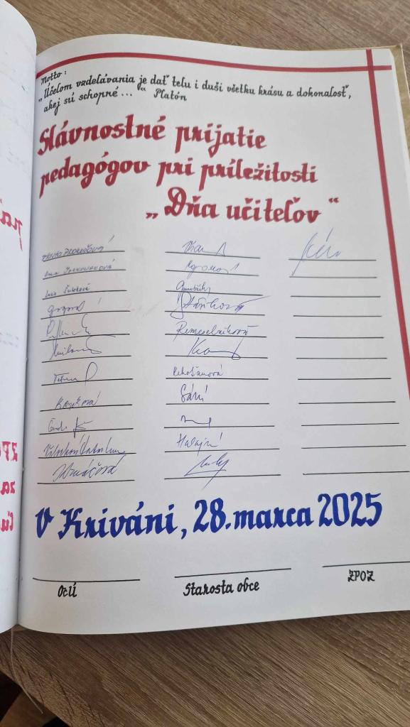 Veríme, že v súčasnej dobe si už každý rodič a celá spoločnosť naplno uvedomuje nezastupiteľnú úlohu učiteľov pri formovaní budúcich generácií a učitelia konečne získajú uznanie, ktoré si zaslúžia.