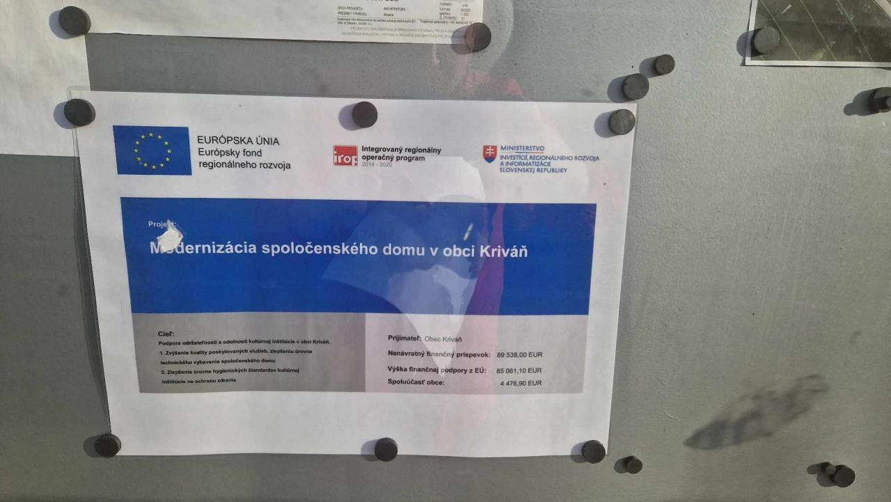 Projekt : Modernizácia spoločenského domu v obci Kriváň